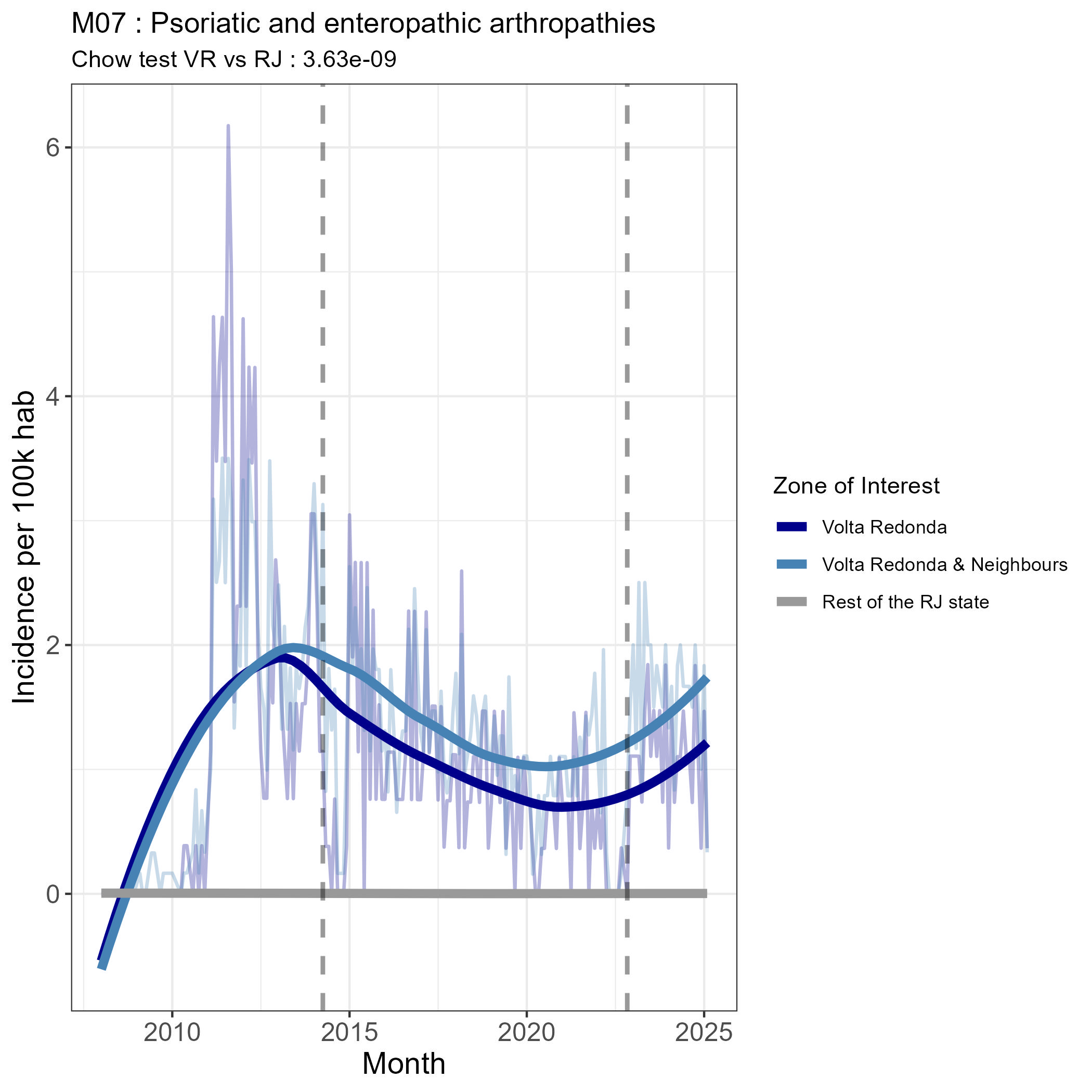 - ● From this ruleset, 13 ICD-10 codes with increased incidence were specific to Volta Redonda and its neighbours; very few (or no) other cities in the state showed elevated incidence for these diseases.